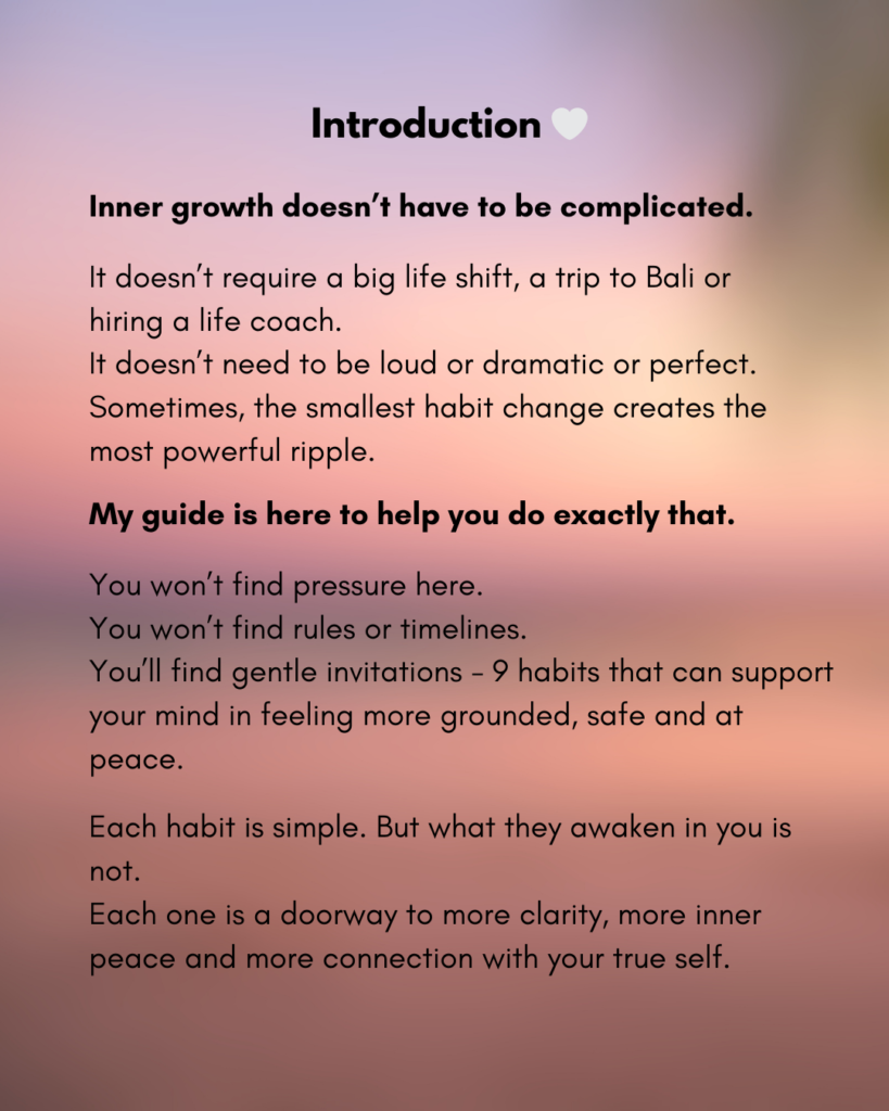 This guide introduces nine gentle habits that make it easier to calm your mind and create more balance in everyday life. Each habit is easy to understand and simple to try out. A soft, supportive resource for anyone who wants a little more peace.
